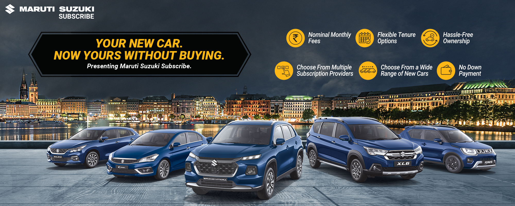 Maruti Suzuki Subscribe enables all customers to enjoy driving their preferred Maruti Suzuki cars without having to deal with all the financial responsibilities that come with owning a car.All you need to do is opt for a monthly subscription plan at a fixed monthly fee, which includes the routine maintenance and insurance costs, and choose a flexible tenure. At Hilltop Motors in, Hinoo, Ranchi, all Hatchback, Sedan, SUV, the MUV models line-up includes Baleno, Invicto, EVitara, Jimny, Ciaz, Ignis, Fronx, Grand Vitara, XL6. Here, you will enjoy Maruti Suzuki Subscribe benefits such as: